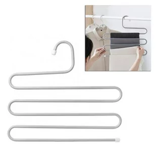Solidny, stalowy wieszak na spodnie. Umożliwia zawieszenie do nawet 5 par spodni jednocześnie. Doskonały sposób na oszczędzenie miejsca w ciasnej szafie. Wykonany z wytrzymałych materiałów (stal), co gwarantuje długie i bezproblemowe użytkowanie.