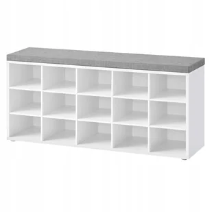Nowoczesna ławka w stylu skandynawskim, prowansalskim na buty z płyty MDF i wygodnym wytrzymałym piankowym siedziskiem oraz o dużej pojemności na uporządkownie 15 par butów