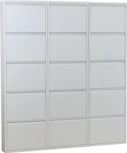 Mebel jest dostarczany w stanie zmontowanym i jest gotowy do użycia natychmiast po otrzymaniu. 3 szafki na buty mogą być również używane pojedynczo. Piękna szafka na buty wykonana z malowanego proszkowo metalu, w której można przechowywać buty, aby zaoszczędzić miejsce. Dzięki tej inteligentnej szafce na buty można zorganizować przechowywanie butów w strefie wejściowej, pomieszczeniu gospodarczym lub sypialni. Wszystkie drzwi w każdej szafce na buty otwierają się jednocześnie.
