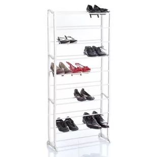 Praktyczny stojak do przechowywania obuwia. Wykonany z wysokiej jakości tworzywa sztucznego oraz stali. Dziesięć poziomów pozwalają na maksymalne wykorzystanie przestrzeni i nie zajmują dużo miejsca. Wyposażony w stabilne nóżki. Dzięki nim bez problemu sprzątniesz kurz i inne zabrudzenia spod szafki. Sprawdzi się zarówno w przedpokoju, jak i szafie czy piwnicy.