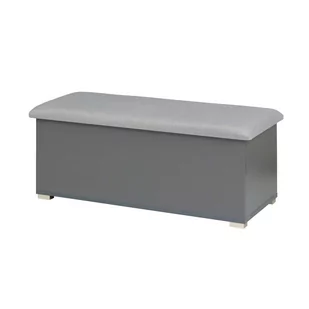 Ława z pojemnikiem kufer z siedziskiem grafit Solidna ława otwierana kufer wykonana z płyty laminowanej grubości 18 mm, obrzeża ABS; podnośnik - podniesiona skrzynia nie opada, Dostepna w 1 paczce do samodzielnego montażu. Wymiary: szerokość: 100 cm, wysokość: 40 cm, głębokość: 42 cm. Wymiary wewnętrzne skrzyni: szerokość: 91 cm, wysokość: