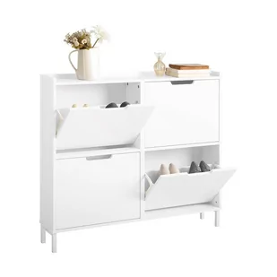 UWAGA (dot. Faktur VAT): Domyślnie wystawiamy faktury zgodnie z procedurą VAT OSS. Wszystkie rachunki są zatem automatycznie wystawiane jak dla osób prywatnych z wliczonym VAT-em. Jeżeli są Państwo klientami biznesowymi, prosimy o przesłanie nam wiadomości mailowej wraz z nazwą firmy oraz ważnym numerem VAT. Wciąż szukają Państwo idealnej szafki na buty, która nie tylko będzie praktyczna, ale także będzie dobrze się prezentować? Szafka posiada 4 komory z uchylnymi drzwiczkami, które są dodatkowo przedzielone wewnątrz na 4 części, co pozwala przechowywać wiele par butów, oszczedzając przy tym miejsce.