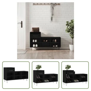 Stojak na buty czarny 102x36x60 cm materiał drewnopochodnyPrzechowuj swoje buty bez kurzu w tej eleganckiej szafce na buty, aby utrzymać porządek w swojej przestrzeni życiowej!Trwały materiał: Drewno konstrukcyjne to materiał o wyjątkowej jakości i gładkiej powierzchni, który charakteryzuje się wytrzymałością, stabilnością i odpornością na wilgoć. Wykonana z drewna konstrukcyjnego szafka na buty jest łatwa w czyszczeniu. Dużo miejsca do przechowywania: półka na buty ma 1 szufladę i 6 przegródek, zapewniając dużo miejsca do przechowywania butów i innych przedmiotów.