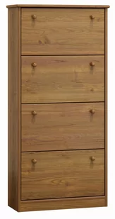 Szafka na buty nr1 dzięki funkcjonalnej budowie ułatwi utrzymanie porządku w przechowywanym obuwiu. Mebel został wykonany w całości z drewna sosnowego, co sprawia że jego konstrukcja jest wyjątkowo trwała i stabilna. Wykończenie szafki idealnie wkomponuje się w różnorodne style wykończeniowe. Mebel wykonany jest poprzez wykorzystanie najlepszego gatunku drewna sosnowego i potrójne malowanie lakierami ekologicznymi. Jako nieliczni używamy do produkcji lakiery, posiadające atest Państwowego Zakładu Higieny.