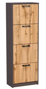 Wysoki regał na buty na zawiasach IBOJA pasuje do wszystkich nowoczesnych przedpokoi. Regał na buty posiada 4 szafki wyposażone w specjalne przegrody, które doskonale organizują przestrzeń. Wymiary: szerokość: 50 cmwysokość: 152 cmgłębokość: 28 cm Pozostałe parametry i cechy: