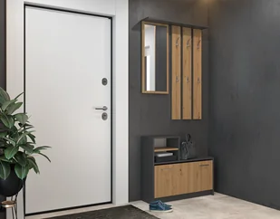 Dodatkowo w zestawie znajduje się duże lustro, które oprócz funkcji użytkowej sprawi, że wnętrze wyda się większe i bardziej oświetlone. Wysokość wieszaka i lustra regulujesz samodzielnie - nie będzie więc problemu, że któryś z domowników nie dosięga do wieszaka, lub niedokładnie widzi swoje odbicie w lustrze. Szafka na buty posiada wygodne uchwyty do otwierana uchylnych drzwiczek i pomieści nawet 9 par butów! Jest to bardzo praktyczny mebel, który pomoże Ci w końcu zapanować nad porządkiem w przedpokoju. Jest to produkt polski, charakteryzujący się staranną jakością wykonania, więc na pewno posłuży Ci przez kilkanaście lat. Opis produktu: