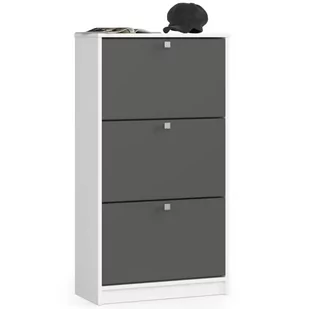 Szafka na obuwie , 3 uchylne drzwiczki, 60 cm . Szafka na buty z uchylnymi drzwiczkami to niezastąpiony mebel do przedpokoju , w którym nie mamy zazwyczaj zbyt wiele miejsca na przechowywanie, a jednocześnie chcemy zachować w nim porządek. Przedpokój to w końcu swoista wizytówka naszego domu - miejsce, które odwiedzający nas goście widzą jako pierwsze. Warto zadbać o odpowiednie wyposażenie tej przestrzeni, aby łatwo było utrzymać w nim ład. Szafka na buty z uchylnymi drzwiczkami zajmuje w przedpokoju niewiele miejsca , dzięki głębokości raptem 28,5 cm.