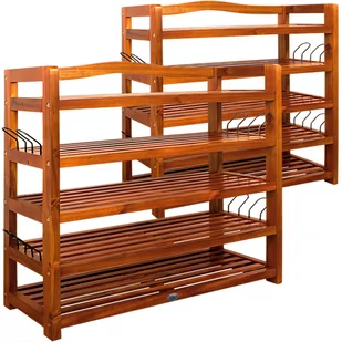 W razie potrzeby wsporniki te można szybko i łatwo usunąć. Zalety regału na buty z 5 półkami: konstrukcja z litego drewna - wysoka jakość wykończeniawykonane z wytrzymałego drewna akacjowegoRozpórki krzyżowe zapewniają bardzo dużą stabilnośćMożliwość obciążenia półek do maks. 40 kgudźwig całkowity maks. 200 kgbocznie zamocowane wsporniki metaloweszybki i łatwy montażWszechstronne zastosowanie Półki na buty o wymiarach: