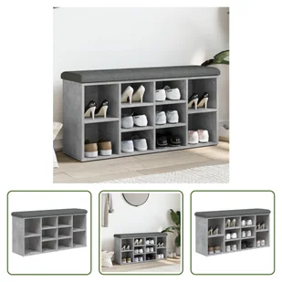 Ławka na buty beton szara 102x32x50 cm materiał drewnopochodnyUtrzymuj swoje buty w porządku i zawsze pod ręką dzięki tej ławce na buty!Wytrzymały materiał: Drewno konstrukcyjne to wysokiej jakości materiał o gładkiej powierzchni, który charakteryzuje się wytrzymałością, stabilnością i odpornością na wilgoć. Dużo miejsca do przechowywania: Ławka do przedpokoju oferuje dużo miejsca do przechowywania, dzięki czemu Twoje buty będą dobrze zorganizowane, a przestrzeń życiowa uporządkowana. Wygodne siedzisko: