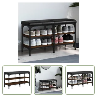 Ławka na buty dąb brązowy 82x32x47 cm materiał drewnopochodnyUtrzymuj swoje buty w porządku i zawsze pod ręką dzięki tej ławce na buty!Solidna konstrukcja: Drewno inżynieryjne to materiał wyjątkowej jakości o gładkiej powierzchni, który charakteryzuje się wytrzymałością, stabilnością i odpornością na wilgoć. Metalowa rama zapewnia ławce dodatkową stabilność i wytrzymałość. Mnóstwo miejsca do przechowywania: Ławka do przedpokoju oferuje mnóstwo miejsca do przechowywania, dzięki czemu buty są dobrze zorganizowane, a w salonie panuje porządek.