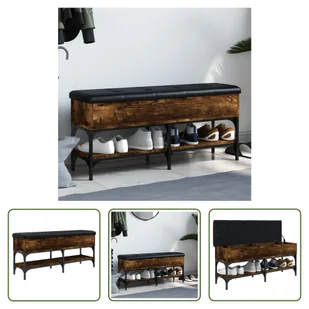 Ławka na buty dąb wędzony 102x32x45 cm materiał drewnopochodnyUtrzymuj swoje buty w porządku i zawsze pod ręką dzięki tej ławce na buty!Solidna konstrukcja: Drewno inżynieryjne to materiał wyjątkowej jakości o gładkiej powierzchni, który charakteryzuje się wytrzymałością, stabilnością i odpornością na wilgoć. Metalowa rama zapewnia ławce dodatkową stabilność i wytrzymałość. Mnóstwo miejsca do przechowywania: Ławka do przedpokoju oferuje mnóstwo miejsca do przechowywania, dzięki czemu buty są dobrze zorganizowane, a w salonie panuje porządek.