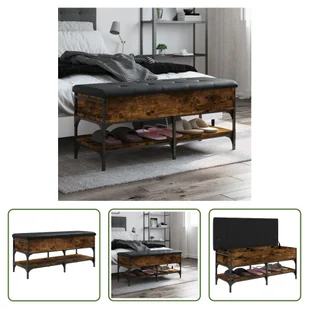 Ławka na buty dąb wędzony 102x42x45 cm materiał drewnopochodnyUtrzymuj swoje buty w porządku i zawsze pod ręką dzięki tej ławce na buty!Solidna konstrukcja: Drewno inżynieryjne to materiał wyjątkowej jakości o gładkiej powierzchni, który charakteryzuje się wytrzymałością, stabilnością i odpornością na wilgoć. Metalowa rama zapewnia ławce dodatkową stabilność i wytrzymałość. Mnóstwo miejsca do przechowywania: Ławka do przedpokoju oferuje mnóstwo miejsca do przechowywania, dzięki czemu buty są dobrze zorganizowane, a w salonie panuje porządek.