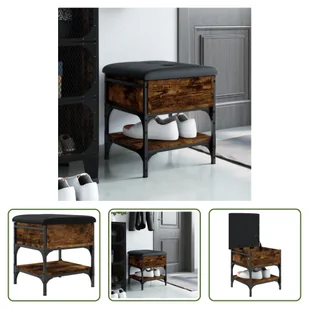 Ławka na buty dąb wędzony 42x42x45 cm materiał drewnopochodnyUtrzymuj swoje buty w porządku i zawsze pod ręką dzięki tej ławce na buty!Solidna konstrukcja: Drewno inżynieryjne to materiał wyjątkowej jakości o gładkiej powierzchni, który charakteryzuje się wytrzymałością, stabilnością i odpornością na wilgoć. Metalowa rama zapewnia ławce dodatkową stabilność i wytrzymałość. Mnóstwo miejsca do przechowywania: Ławka do przedpokoju oferuje mnóstwo miejsca do przechowywania, dzięki czemu Twoje buty będą dobrze zorganizowane, a w salonie zapanuje porządek.