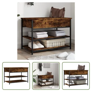 Ławka na buty dąb wędzony 70x42,5x50 cm materiał drewnopochodnyUtrzymuj swoje buty w porządku i zawsze pod ręką dzięki tej ławce na buty!Solidna konstrukcja: Drewno inżynieryjne to materiał wyjątkowej jakości o gładkiej powierzchni, który charakteryzuje się wytrzymałością, stabilnością i odpornością na wilgoć. Metalowa rama zapewnia ławce dodatkową stabilność i wytrzymałość. Mnóstwo miejsca do przechowywania: Ławka do przedpokoju oferuje mnóstwo miejsca do przechowywania, dzięki czemu Twoje buty będą dobrze zorganizowane, a w salonie zapanuje porządek.