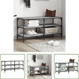 Ławka na buty szara Sonoma 100x38,5x49 cm materiał drewnopochodnyUtrzymuj swoje buty w porządku i zawsze pod ręką dzięki tej ławce na buty!Solidna konstrukcja: Drewno inżynieryjne to materiał wyjątkowej jakości o gładkiej powierzchni, który charakteryzuje się wytrzymałością, stabilnością i odpornością na wilgoć. Metalowa rama zapewnia ławce dodatkową stabilność i wytrzymałość. Mnóstwo miejsca do przechowywania: Ławka do przedpokoju jest wyposażona w 3 półki, dzięki czemu oferuje mnóstwo miejsca do przechowywania butów w przestrzeni mieszkalnej.