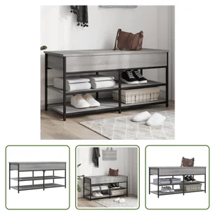 Ławka na buty szara Sonoma 100x42,5x50 cm materiał drewnopochodnyUtrzymuj swoje buty w porządku i zawsze pod ręką dzięki tej ławce na buty!Solidna konstrukcja: Drewno inżynieryjne to materiał wyjątkowej jakości o gładkiej powierzchni, który charakteryzuje się wytrzymałością, stabilnością i odpornością na wilgoć. Metalowa rama zapewnia ławce dodatkową stabilność i wytrzymałość. Mnóstwo miejsca do przechowywania: Ławka do przedpokoju oferuje mnóstwo miejsca do przechowywania, dzięki czemu Twoje buty będą dobrze zorganizowane, a w salonie zapanuje porządek.