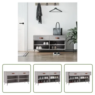 Ławka na buty szara Sonoma 102x35x55 cm materiał drewnopochodnyPrzechowuj swoje buty w tej stylowej i praktycznej ławce na buty. To idealny wybór do uporządkowania butów. Trwały materiał: Drewno konstrukcyjne to wyjątkowej jakości materiał o gładkiej powierzchni, który charakteryzuje się wytrzymałością, stabilnością i odpornością na wilgoć. Dużo miejsca do przechowywania: