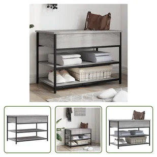 Ławka na buty szara Sonoma 70x42,5x50 cm materiał drewnopochodnyUtrzymuj swoje buty w porządku i zawsze pod ręką dzięki tej ławce na buty!Solidna konstrukcja: Drewno inżynieryjne to materiał wyjątkowej jakości o gładkiej powierzchni, który charakteryzuje się wytrzymałością, stabilnością i odpornością na wilgoć. Metalowa rama zapewnia ławce dodatkową stabilność i wytrzymałość. Mnóstwo miejsca do przechowywania: Ławka do przedpokoju oferuje mnóstwo miejsca do przechowywania, dzięki czemu Twoje buty będą dobrze zorganizowane, a w salonie zapanuje porządek.