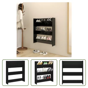 Przechowuj swoje buty schludnie i zawsze w zasięgu ręki w tej nowoczesnej szafce na buty! Charakteryzuje się ona prostym designem, który harmonijnie wtapia się w przestrzeń mieszkalną. Szafka na buty jest wyposażona w 3 uchylne półki, dzięki którym buty, kozaki i kapcie będą uporządkowane i schludne. Ten stojak na buty jest montowany na ścianie, co pozwala zaoszczędzić miejsce i utrzymać porządek w wejściu i na podłodze. Można go zamocować na dowolnej wysokości. Ponadto organizer na buty można łatwo wyczyścić wilgotną szmatką.