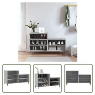 Półka na buty betonowa szara 102x36x60 cm materiał drewnopochodnyPrzechowuj swoje buty bez kurzu w tej eleganckiej szafce na buty, aby utrzymać porządek w swojej przestrzeni życiowej!Trwały materiał: Drewno inżynieryjne to materiał wyjątkowej jakości o gładkiej powierzchni, który charakteryzuje się wytrzymałością, stabilnością i odpornością na wilgoć. Wykonana z drewna konstrukcyjnego półka na buty jest łatwa w czyszczeniu. Dużo miejsca do przechowywania: Szafka na buty ma 5 przegródek, dzięki czemu oferuje dużo miejsca do przechowywania butów i innych przedmiotów.