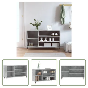 Półka na buty betonowa szara 102x36x60 cm materiał drewnopochodnyPrzechowuj swoje buty bez kurzu w tej eleganckiej szafce na buty, aby utrzymać porządek w swojej przestrzeni życiowej!Trwały materiał: Drewno inżynieryjne to materiał wyjątkowej jakości o gładkiej powierzchni, który charakteryzuje się wytrzymałością, stabilnością i odpornością na wilgoć. Wykonana z drewna konstrukcyjnego półka na buty jest łatwa w czyszczeniu. Dużo miejsca do przechowywania: Szafka na buty ma 5 przegródek, dzięki czemu oferuje dużo miejsca do przechowywania butów i innych przedmiotów.