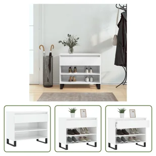Biała półka na buty o wysokim połysku i wymiarach 70x36x60 cm wykonana z drewnaPrzechowuj swoje buty bez kurzu w tej eleganckiej szafce na buty, aby utrzymać porządek w swojej przestrzeni życiowej!Trwały materiał: Drewno inżynieryjne to materiał wyjątkowej jakości o gładkiej powierzchni, który charakteryzuje się wytrzymałością, stabilnością i odpornością na wilgoć. Wykonana z drewna konstrukcyjnego szafka na buty jest łatwa w czyszczeniu. Dużo miejsca do przechowywania: półka na buty ma 1 szufladę i 2 otwarte przegrody, zapewniając dużo miejsca do przechowywania butów i innych przedmiotów.