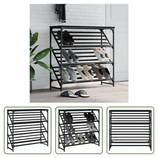 Stojak na buty czarny 90x30x85 cm materiał drewnopochodnyTen klasyczny stojak na buty ma atrakcyjny wygląd i pozwala utrzymać porządek w domu. Trwały materiał: Drewno inżynieryjne to wyjątkowej jakości materiał o gładkiej powierzchni, który charakteryzuje się wytrzymałością, stabilnością i odpornością na wilgoć. Solidna rama: Stalowa rama z czarną powłoką proszkową zapewnia stojakowi na buty dodatkową stabilność i wytrzymałość.