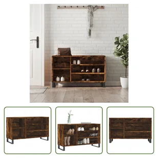 Stojak na buty z wędzonego dębu 102x36x60 cm materiał drewnopochodnyPrzechowuj swoje buty bez kurzu w tej eleganckiej szafce na buty, aby utrzymać porządek w swojej przestrzeni życiowej!Trwały materiał: Drewno konstrukcyjne to materiał o wyjątkowej jakości i gładkiej powierzchni, który charakteryzuje się wytrzymałością, stabilnością i odpornością na wilgoć. Wykonana z drewna konstrukcyjnego półka na buty jest łatwa w czyszczeniu. Dużo miejsca do przechowywania: Szafka na buty ma 5 przegródek, dzięki czemu oferuje dużo miejsca do przechowywania butów i innych przedmiotów.