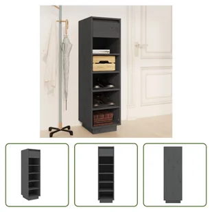 Szafka na buty szara 30x34x105 cm lite drewno sosnoweTa szafka na buty to doskonałe rozwiązanie do przechowywania ulubionych butów. Ten stojak na buty imponuje solidnością, trwałością i długą żywotnością. Dzięki prostemu designowi harmonijnie wkomponuje się w wystrój wnętrza. Półka na buty ma 5 przegródek i 1 szufladę, zapewniając mnóstwo miejsca do przechowywania butów lub innych przedmiotów. Jest również łatwy do czyszczenia wilgotną szmatką.