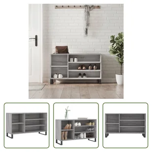 Półka na buty szara Sonoma 102x36x60 cm materiał drewnopochodnyPrzechowuj swoje buty bez kurzu w tej eleganckiej szafce na buty, aby utrzymać porządek w swojej przestrzeni życiowej!Trwały materiał: Drewno inżynieryjne to materiał wyjątkowej jakości o gładkiej powierzchni, który charakteryzuje się wytrzymałością, stabilnością i odpornością na wilgoć. Wykonana z drewna konstrukcyjnego półka na buty jest łatwa w czyszczeniu. Dużo miejsca do przechowywania: Szafka na buty ma 5 przegródek, dzięki czemu oferuje dużo miejsca do przechowywania butów i innych przedmiotów.