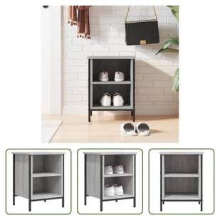 Ten stojak na buty chroni buty przed kurzem i utrzymuje porządek w przestrzeni mieszkalnej! Trwały materiał: Drewno inżynieryjne to wyjątkowej jakości materiał o gładkiej powierzchni, który charakteryzuje się wytrzymałością, stabilnością i odpornością na wilgoć: Malowana proszkowo stalowa rama dodaje industrialnego i przyjemnego akcentu do wnętrza, zapewniając jednocześnie stabilność. Dużo miejsca do przechowywania: ta szafka na buty ma 2 przegrody, które zapewniają dużo miejsca do przechowywania wszystkich rodzajów butów.