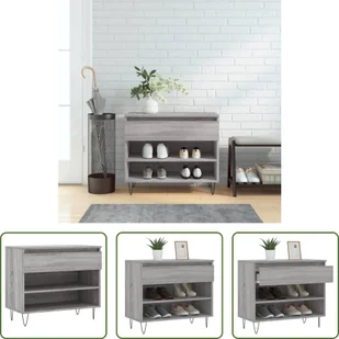 Półka na buty szara Sonoma 70x36x60 cm materiał drewnopochodnyPrzechowuj swoje buty bez kurzu w tej eleganckiej szafce na buty, aby utrzymać porządek w swojej przestrzeni życiowej!Trwały materiał: Drewno inżynieryjne to materiał wyjątkowej jakości o gładkiej powierzchni, który charakteryzuje się wytrzymałością, stabilnością i odpornością na wilgoć. Wykonana z drewna konstrukcyjnego szafka na buty jest łatwa w czyszczeniu. Dużo miejsca do przechowywania: Półka na buty ma 1 szufladę i 2 otwarte przegrody, zapewniając dużo miejsca do przechowywania butów i innych przedmiotów.