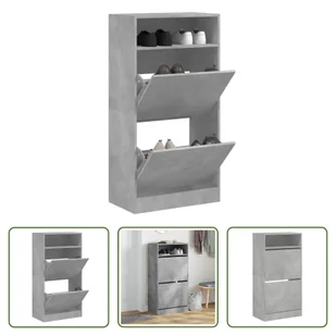 Szafka na buty betonowa szara 60x34x116 cm materiał drewnopochodnyTa szafka na buty jest doskonałym wyborem do uporządkowania obuwia, szczególnie w ciasnych i wąskich przestrzeniach, dzięki swojej kompaktowej konstrukcji. Trwały materiał: Drewno konstrukcyjne to wyjątkowej jakości materiał o gładkiej powierzchni, który charakteryzuje się wytrzymałością, stabilnością i odpornością na wilgoć. Dużo miejsca do przechowywania: Ta wywrotka na buty ma 1 półkę i 2 klapy, zapewniając dużo miejsca na przechowywanie butów.
