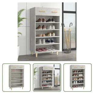 Szafka na buty betonowa szara 60x35x105 cm materiał drewnopochodnyUporządkuj swoje buty i stwórz schludne otoczenie dzięki tej skandynawskiej, minimalistycznej szafce na buty!Wytrzymały materiał: Dzięki gładkiej powierzchni, drewno inżynieryjne jest wysokiej jakości materiałem, który charakteryzuje się wytrzymałością, stabilnością i odpornością na wilgoć. Dużo miejsca do przechowywania: Szafka na buty ma 5 przegródek i 1 szufladę, dzięki czemu oferuje wystarczająco dużo miejsca, aby dobrze zorganizować buty. Dzięki tej praktycznej szafce na buty nie będziesz już denerwować się butami stojącymi na podłodze.