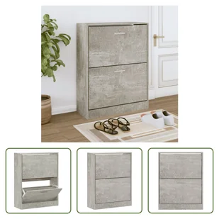 Szafka na buty betonowa szara 63x24x81 cm materiał drewnopochodnyTa szafka na buty o nowoczesnym i stylowym designie to doskonały mebel do uporządkowanego i zorganizowanego przechowywania obuwia. Organizer na buty nadaje się do przedpokoju, korytarza, salonu i każdego innego miejsca, w którym chcesz go umieścić. Trwały materiał: Drewno inżynieryjne to wyjątkowej jakości materiał o gładkiej powierzchni, który charakteryzuje się wytrzymałością, stabilnością i odpornością na wilgoć. Mnóstwo miejsca do przechowywania: