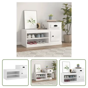 The Living Store Szafka na buty biały wysoki połysk 100x42x60 cm materiał drewnopochodny