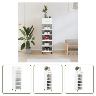 Biała szafka na buty na wysoki połysk 30x35x105 cm materiał drewnopochodnyUtrzymaj porządek w domu dzięki tej eleganckiej szafce na buty!Trwały materiał: Drewno konstrukcyjne to materiał o wyjątkowej jakości i gładkiej powierzchni, który charakteryzuje się wytrzymałością, stabilnością i odpornością na wilgoć. Mnóstwo miejsca do przechowywania: Dzięki 1 szufladzie i 5 otwartym przegrodom, ta szafka na buty oferuje mnóstwo miejsca do przechowywania wszystkich rodzajów obuwia. Solidna górna półka: