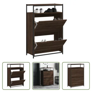Szafka na buty dąb brązowy 75x34x112 cm materiał drewnopochodnyTa szafka na buty jest doskonałym wyborem do uporządkowania obuwia, szczególnie w ciasnych i wąskich przestrzeniach, dzięki swojej kompaktowej konstrukcji. Trwały materiał: Drewno konstrukcyjne to wyjątkowej jakości materiał o gładkiej powierzchni, który charakteryzuje się wytrzymałością, stabilnością i odpornością na wilgoć. Dużo miejsca do przechowywania: Ta wywrotka na buty ma 1 półkę i 2 klapy, zapewniając dużo miejsca na przechowywanie butów.