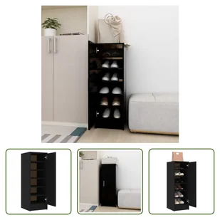 Szafka na buty czarna 32x35x92 cm materiał drewnopochodnyTa szafka na buty oferuje doskonałe rozwiązanie do przechowywania ulubionych butów. Ten organizer na buty jest trwały, solidny i wytrzymały. Szafka ma elegancki wygląd, który z łatwością wkomponuje się w przestrzeń mieszkalną. Regał na buty ma 6 półek i oferuje mnóstwo miejsca do przechowywania, dzięki czemu buty są dobrze zorganizowane. Dzięki drzwiczkom otwieranym w lewo lub w prawo, szafka na buty chroni obuwie przed kurzem i utrzymuje je poza zasięgiem wzroku.