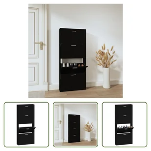 Szafka na buty czarna 59x17x150 cm materiał drewnopochodnyTa szafka na buty, o nowoczesnym i stylowym designie, jest doskonałym meblem do utrzymania porządku i organizacji butów. Organizer na buty nadaje się do przedpokoju, korytarza, salonu i każdego innego miejsca, w którym chciałbyś go mieć. Trwały materiał: Drewno inżynieryjne to wyjątkowej jakości materiał o gładkiej powierzchni, który charakteryzuje się wytrzymałością, stabilnością i odpornością na wilgoć. Dużo miejsca do przechowywania: