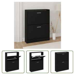 Szafka na buty czarna 59x17x81 cm materiał drewnopochodnyTa szafka na buty, o nowoczesnym i stylowym designie, jest doskonałym meblem do utrzymania porządku i organizacji butów. Organizer na buty nadaje się do przedpokoju, korytarza, salonu i każdego innego miejsca, w którym chcesz go umieścić. Trwały materiał: Drewno inżynieryjne to wyjątkowej jakości materiał o gładkiej powierzchni, który charakteryzuje się wytrzymałością, stabilnością i odpornością na wilgoć. Mnóstwo miejsca do przechowywania: