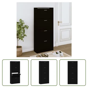 Szafka na buty czarna 63x24x147 cm materiał drewnopochodnyTa szafka na buty, o nowoczesnym i stylowym designie, jest doskonałym meblem do utrzymania porządku i organizacji butów. Organizer na buty nadaje się do przedpokoju, korytarza, salonu i każdego innego miejsca, w którym chcesz go umieścić. Trwały materiał: Drewno inżynieryjne to wyjątkowej jakości materiał o gładkiej powierzchni, który charakteryzuje się wytrzymałością, stabilnością i odpornością na wilgoć. Dużo miejsca do przechowywania: