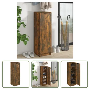 Szafka na buty dąb wędzony 30x35x100 cm materiał drewnopochodnyDzięki tej szafce na buty już nigdy nie będziesz irytować się butami leżącymi w pobliżu!Solidny materiał: Drewno konstrukcyjne to materiał o wyjątkowej jakości i gładkiej powierzchni, który charakteryzuje się wytrzymałością, stabilnością i odpornością na wilgoć. Mnóstwo miejsca do przechowywania: Ta szafka na buty ma drzwi i półki, które zapewniają porządek i chronią buty przed kurzem. Wytrzymała górna półka: