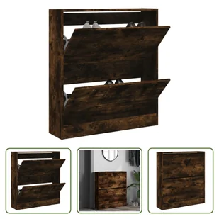 Szafka na buty dąb wędzony 80x21x87,5 cm materiał drewnopochodnyTa szafka na buty jest doskonałym wyborem do uporządkowania obuwia, szczególnie w ciasnych i wąskich przestrzeniach, dzięki swojej kompaktowej konstrukcji. Trwały materiał: Drewno konstrukcyjne to wyjątkowej jakości materiał o gładkiej powierzchni, który charakteryzuje się wytrzymałością, stabilnością i odpornością na wilgoć. Dużo miejsca do przechowywania: Ta wywrotka na buty ma 2 przegrody, dzięki czemu oferuje dużo miejsca na przechowywanie butów.