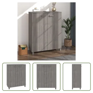 Szafka na buty HAMAR jasnoszara 85x40x108 cm lite drewno sosnoweDodaj odrobinę wyjątkowego uroku do swojego wnętrza dzięki tej drewnianej szafce na buty!Lite drewno sosnowe: Lite drewno sosnowe to piękny, naturalny materiał. Impregnacja olejem, woskiem, lakierem lub glazurą wzmacnia powierzchnię i ułatwia czyszczenie. Drewno sosnowe ma proste usłojenie, a sęki nadają mu charakterystyczny, rustykalny wygląd. Solidna i stabilna rama: