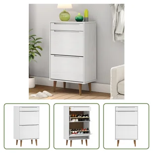 Szafka na buty MOLDE White 59,5x35x103 cm lite drewno sosnoweDzięki tej uroczej i solidnej drewnianej szafce na buty możesz praktycznie przechowywać buty i jednocześnie upiększać swój dom. Lite drewno sosnowe: Lite drewno sosnowe to piękny naturalny materiał. Drewno sosnowe ma proste słoje, a sęki nadają materiałowi charakterystyczny, rustykalny wygląd. Lakier UV: Lakier UV to specjalny rodzaj lakieru, który jest nakładany przy użyciu systemu suszenia UV.