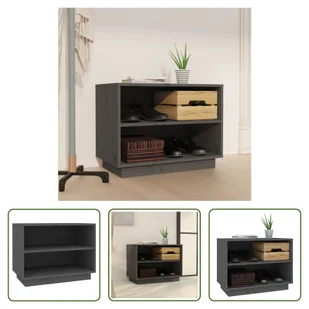 Ta drewniana szafka na buty to doskonałe rozwiązanie do przechowywania ulubionych butów. Wykonana z litego drewna sosnowego szafka jest stabilna i wytrzymała. Stojak na buty oferuje wystarczająco dużo miejsca, aby utrzymać buty dobrze zorganizowane i w zasięgu ręki. Na wytrzymałej górnej półce można również wyeksponować przedmioty dekoracyjne, takie jak ramki do zdjęć lub rośliny doniczkowe. Kolor: SzaryMateriał: