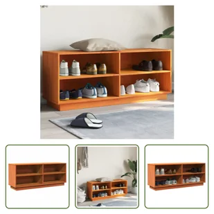 Szafka na buty woskowany brąz 110x34x45 cm lite drewno sosnowePrzechowuj swoje buty w tej drewnianej szafce na buty, aby utrzymać porządek w domu!Trwały materiał: Lite drewno sosnowe to piękny naturalny materiał znany ze swojej trwałości i długowieczności. Jego proste usłojenie przyczynia się do atrakcyjnego wyglądu, a sęki nadają mu rustykalny charakter. Dużo miejsca do przechowywania: Szafka na buty ma 4 otwarte przegrody, które zapewniają dużo miejsca do przechowywania butów.
