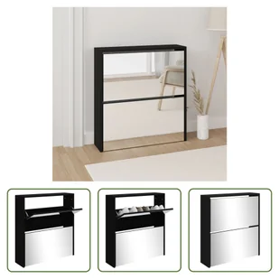 Kolor: CzarnyMateriał: Materiał drewnopochodny, szkłoWymiary: 63 x 17 x 67 cm (szer. x gł. x wys.)2 przegródki na zawiasachMiejsce do przechowywania łącznie ok. 6-8 par butów (w zależności od rozmiaru butów)Dokumenty prawne: Więcej informacji na temat zabezpieczania mebli przed przewróceniem można znaleźć tutaj