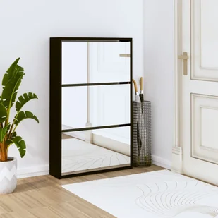 Szafka na buty z lustrem 3 przegrody czarna 63x17x102,5 cmTa szafka na buty z 3 uchylnymi przegrodami ma nowoczesny i stylowy wygląd i jest doskonałym meblem do schludnego przechowywania butów. Nadaje się do przedpokoju, salonu, sypialni i każdego innego miejsca, w którym chcesz ją umieścić. Trwały materiał: Drewno inżynieryjne to wyjątkowej jakości materiał o gładkiej powierzchni, który charakteryzuje się wytrzymałością, stabilnością i odpornością na wilgoć. Dużo miejsca do przechowywania: